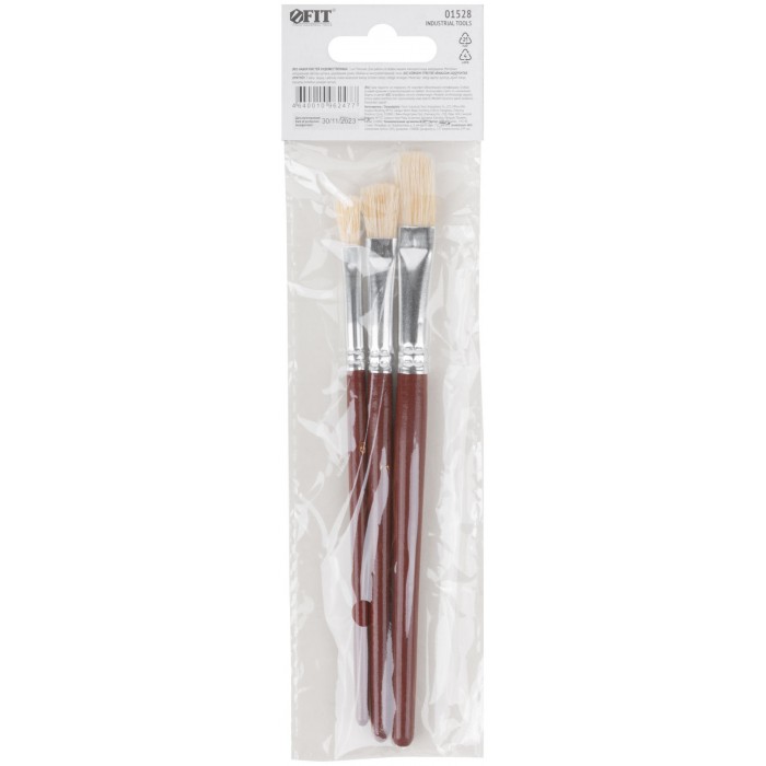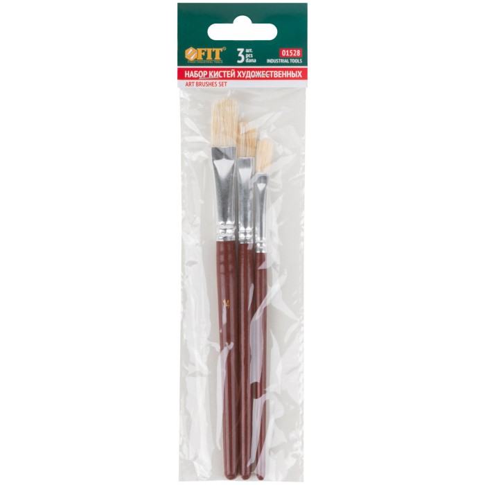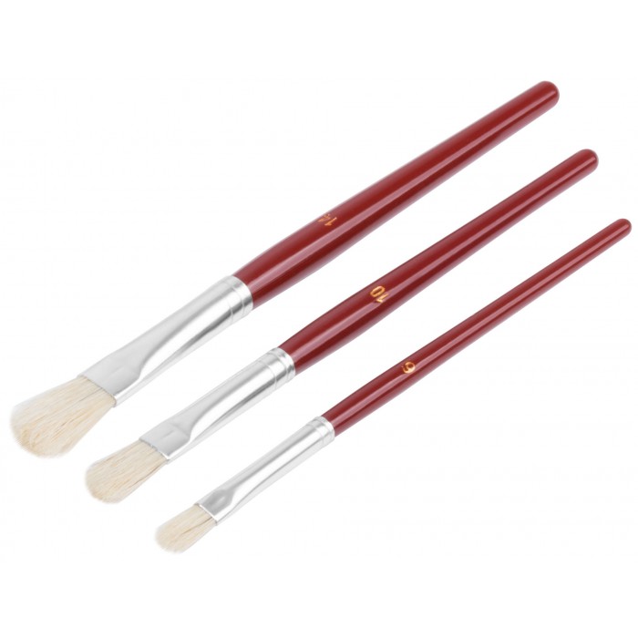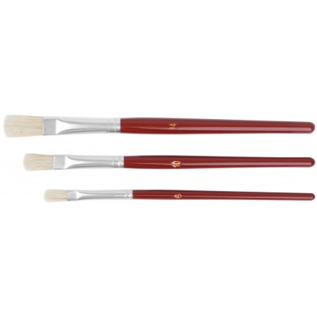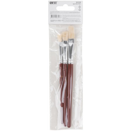 Набор 3 штуки. Плоские. Для работы со всеми видами лакокрасочных материалов. Материал: натуральная светлая щетина, деревянные ручки. Упаковка: п/э пакет с картонным подвесом.