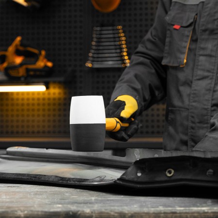 Киянка резиновая, 680 г, черно-белая, фибергласовая рукоятка c TPR покрытием Denzel