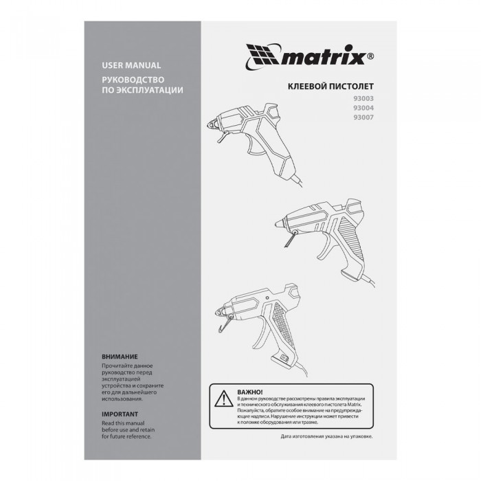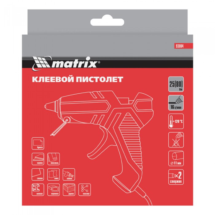 Клеевой пистолет, 11 мм, 25 (80) Вт, 16 г/мин Matrix (93004)