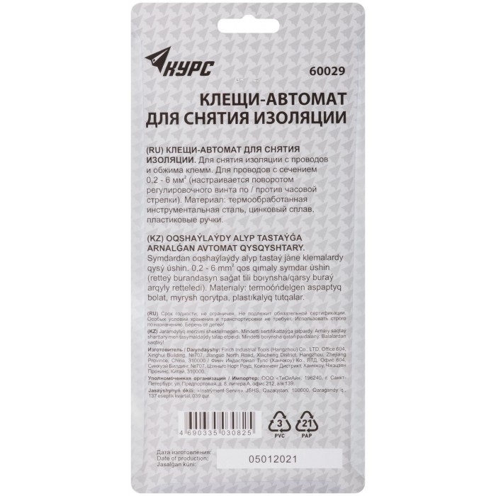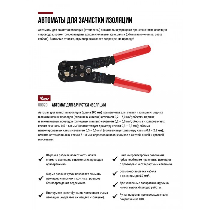 Клещи - автомат для зачистки изоляции диаметр 0,2-6,0 мм, 205 мм (60029)
