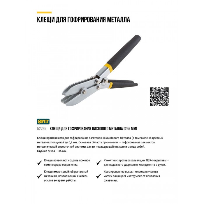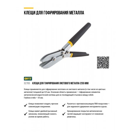 Клещи для гофрирования листового металла, ПВХ покрытие ручек, 255 мм (52765)