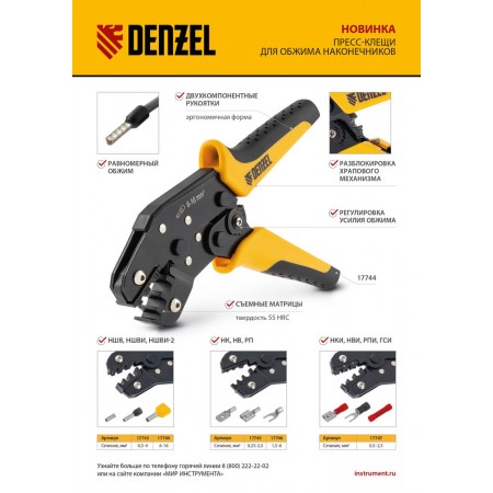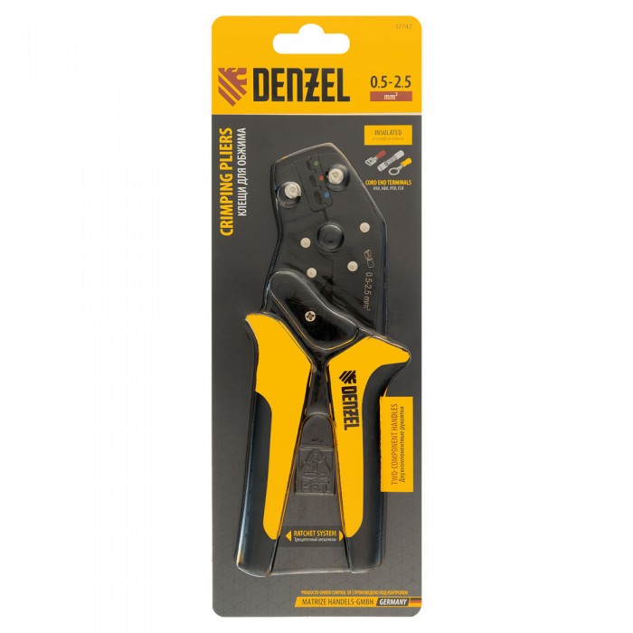 Клещи для обжима изолир. наконечников НКИ и НВИ, разъемов РПИ, гильз ГСИ, 0,5 - 2,5 мм2 Denzel (17747)