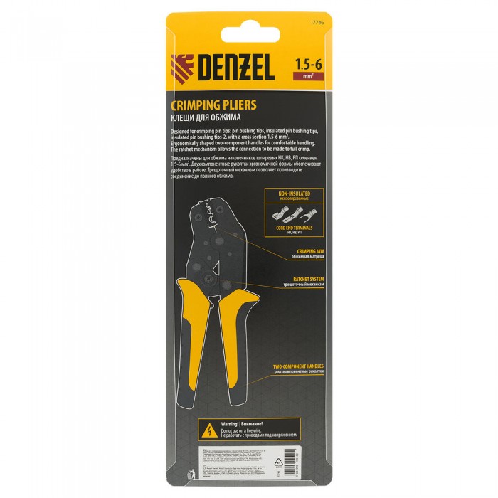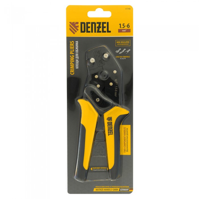 Клещи для обжима неизолированных наконечников НК и НВ, разъемов РП, 1,5 - 6 мм2 Denzel (17746)