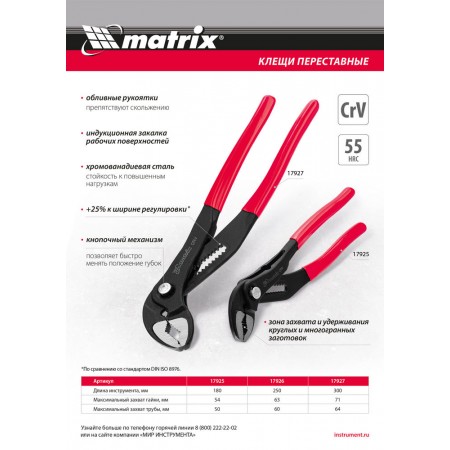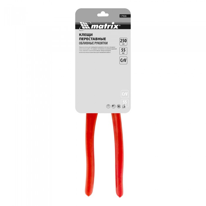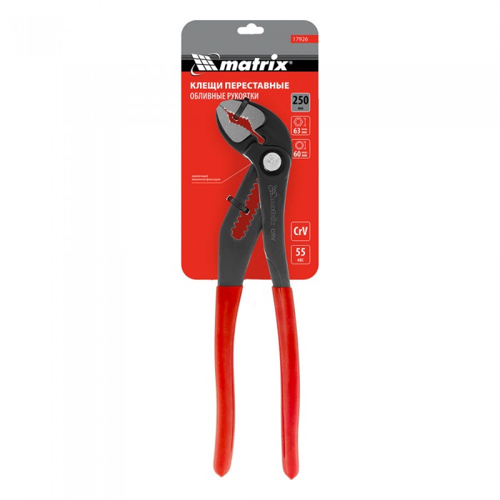 Клещи переставные 250 мм, кнопочный механизм, хром-ванадий, обливные рукоятки Matrix (17926)
