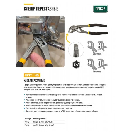 Клещи переставные CrV, тип D3, узкие губки 300 мм ( 45 / 100 мм ) (70654)