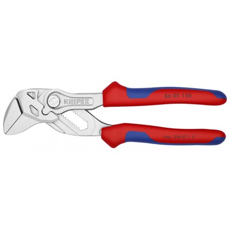 Клещи переставные-гаечный ключ, зев 27 мм, длина 150 мм, хром, 2-комп ручки, SB (KN-8605150SB)