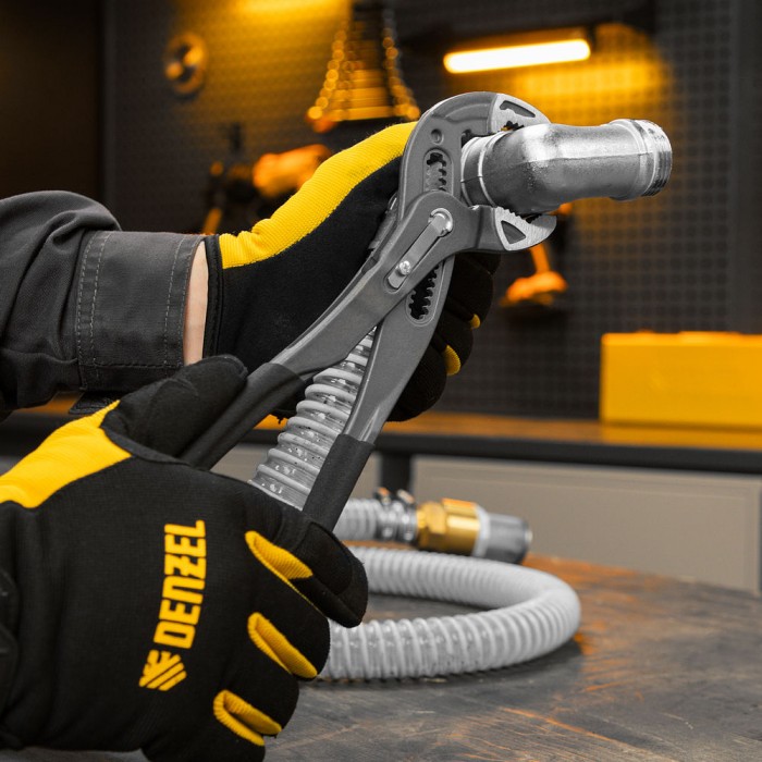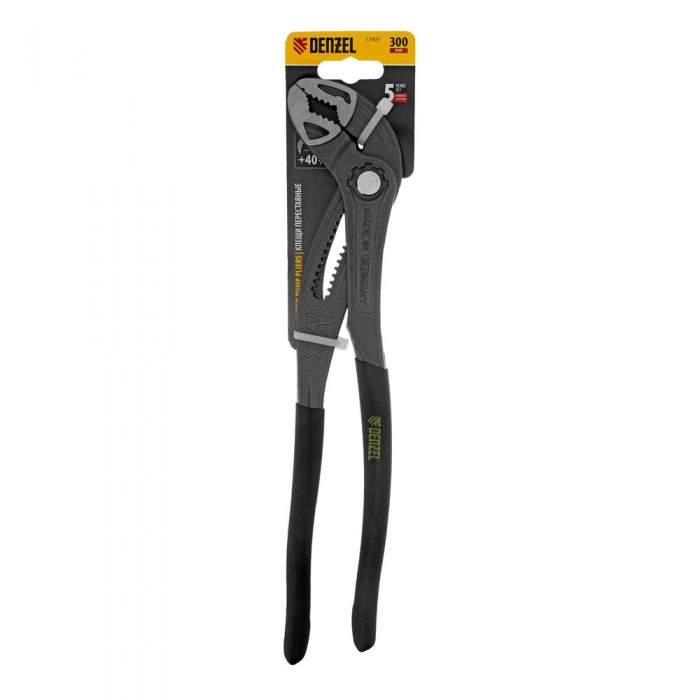 Клещи переставные, кнопочный механизм, обливные рукоятки, 300 мм Denzel (17907)