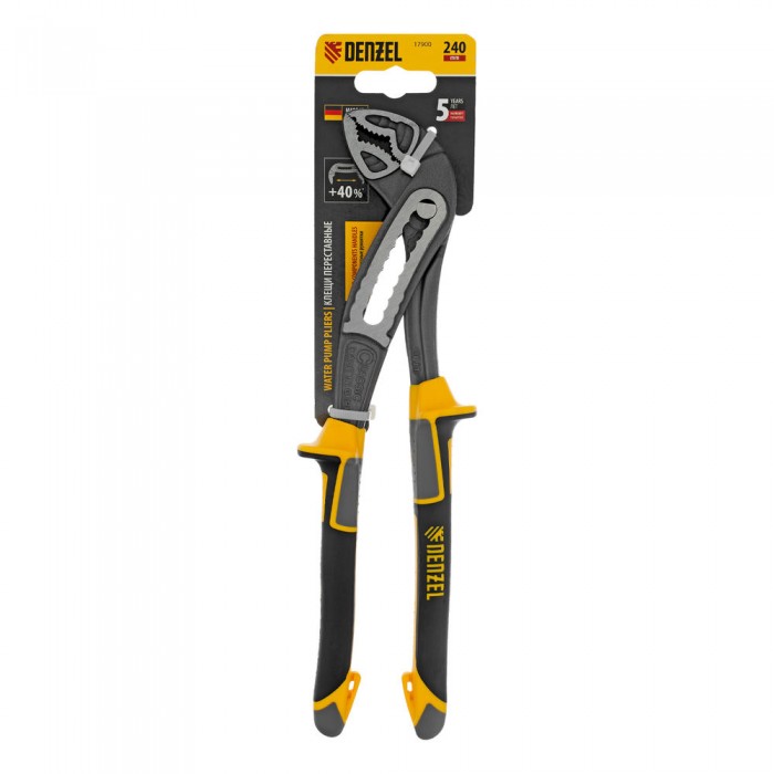 Клещи переставные, трехкомпонентные рукоятки 240 мм Denzel (17900)