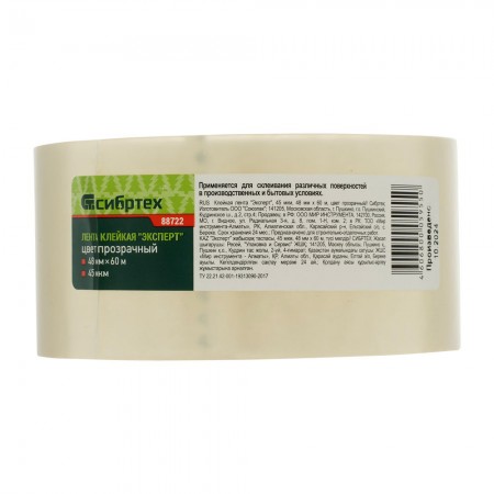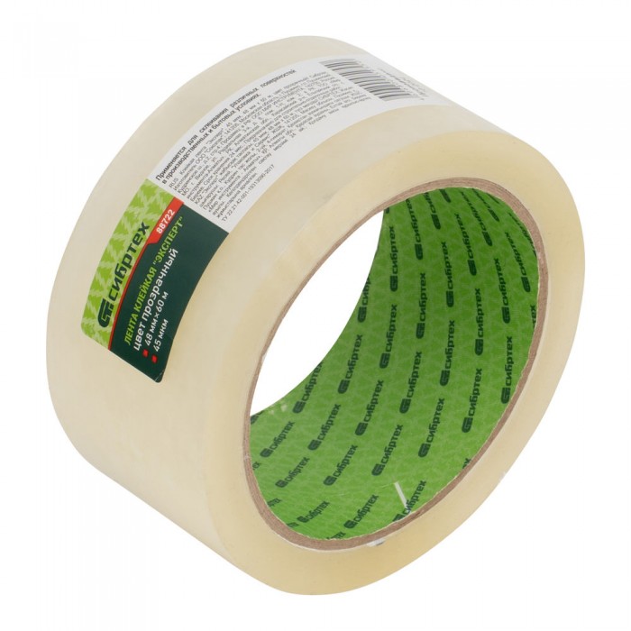 Клейкая лента "Эксперт", 45 мкм, 48 мм х 60 м, цвет прозрачный Сибртех (88722)