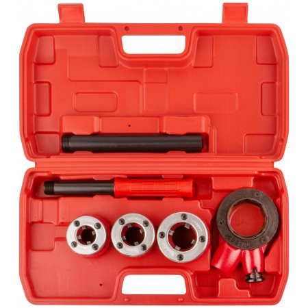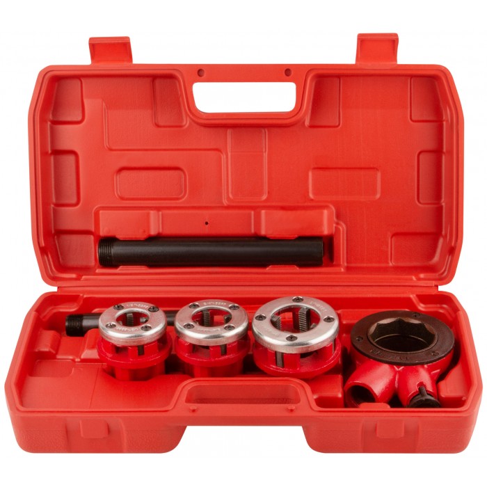 Набор для нарезания наружной резьбы на металлических трубах стандартного диаметра. Материал: инструментальная сталь с хромирован-