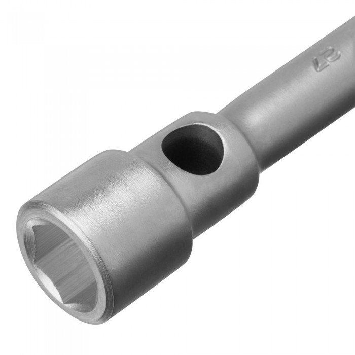 - Размеры: Двусторонний дизайн с размерами 24 мм и 27 мм, что позволяет работать с болтами различных диаметров, расширяя область применения ключа.