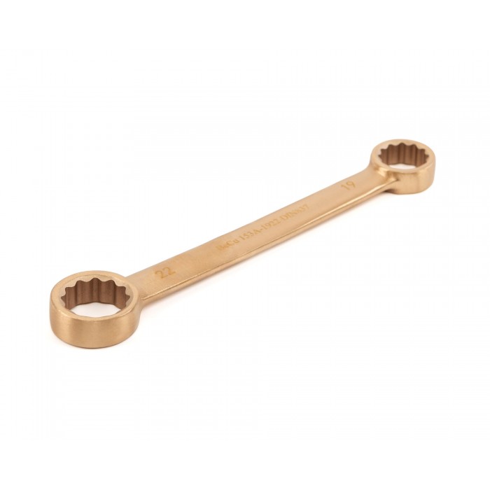 Ключ гаечный накидной двусторонний плоский 19х22 искробезопасный сплав BeCu, HORTZ