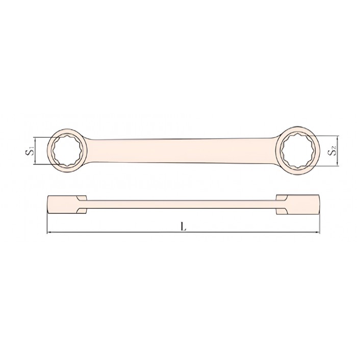 Ключ гаечный накидной двусторонний плоский 55х60 искробезопасный сплав AlCu 153A-5560, HORTZ