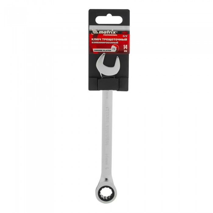 Ключ комбинированный трещоточный, 14 мм, CrV, зеркальный хром Matrix Professional