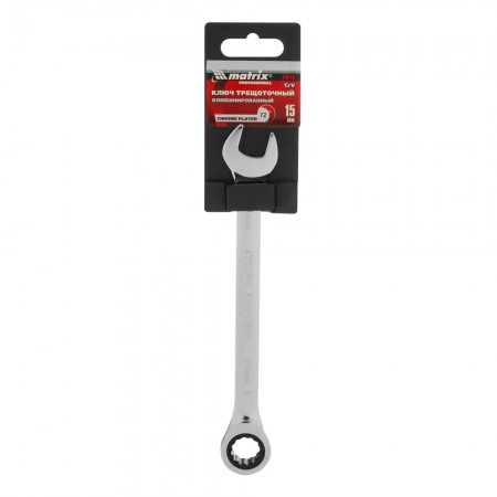 Ключ комбинированный трещоточный, 15 мм, CrV, зеркальный хром Matrix Professional