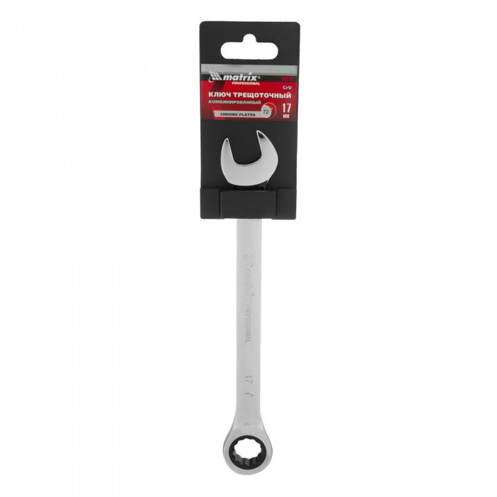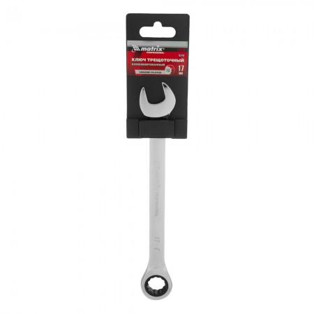 Ключ комбинированный трещоточный, 17 мм, CrV, зеркальный хром Matrix Professional