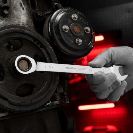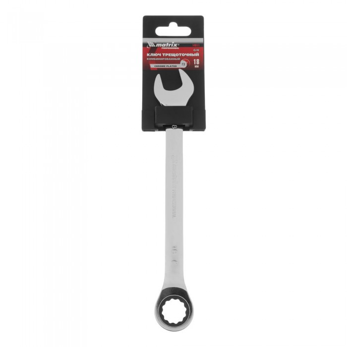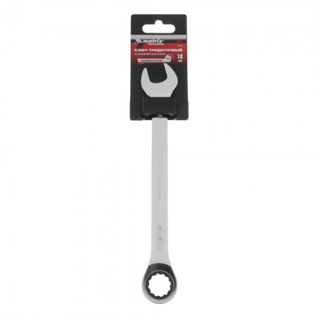 Ключ комбинированный трещоточный, 18 мм, CrV, зеркальный хром Matrix Professional