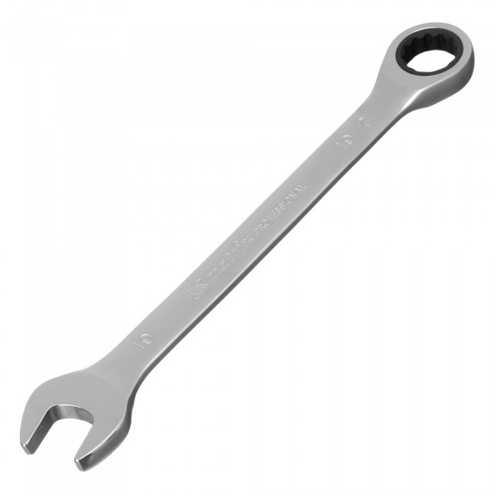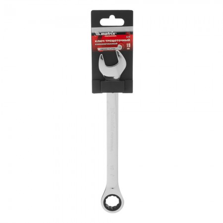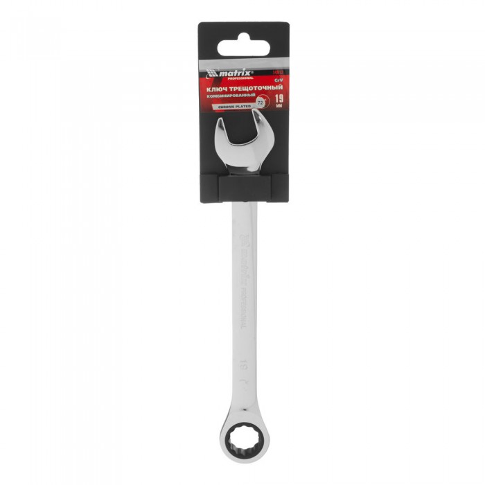 Ключ комбинированный трещоточный, 19 мм, CrV, зеркальный хром Matrix Professional