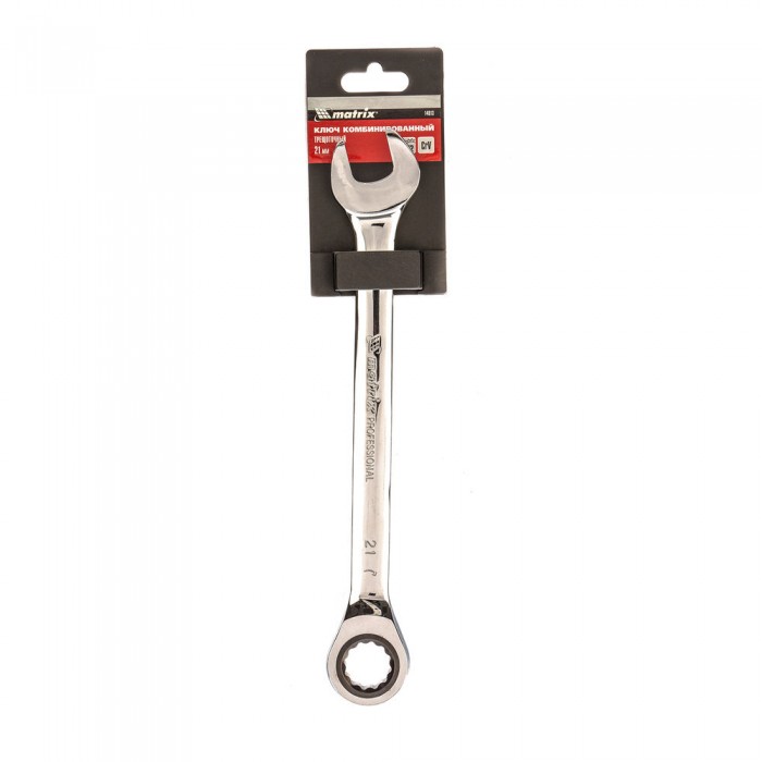 Ключ комбинированный трещоточный, 21 мм, CrV, зеркальный хром Matrix