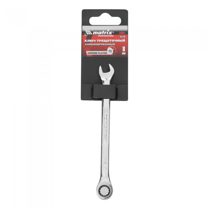 Ключ комбинированный трещоточный, 8 мм, CrV, зеркальный хром Matrix Professional