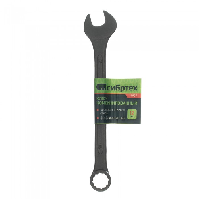 Ключ комбинированый, 12 мм, CrV, фосфатированный Сибртех