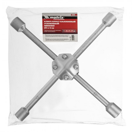 Ключ-крест баллонный, 17 х 19 х 21 х 22 мм, усиленный, толщина 16 мм Matrix Professional