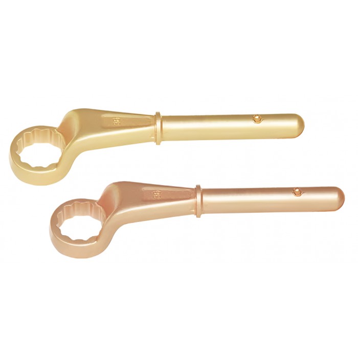 Ключ накидной под удлинитель (специальный) HORTZ, Накидной односторонний искробезопасный ключ предназначен для выполнения монтажных работ и технического обслуживания оборудования в условиях опасных производственных объектов. Искробезопасные ключи применяют в металлургической, газовой, нефтяной, горнодобывающей, угольной и других отраслях промышленности, а также в зонах повышенной взрывоопасности. Изготавливается в двух вариантах сплавов: алюминиевая бронза и бериллиевая бронза (AL-Cu & Be-Cu). Высокая прочность, высокое качество. Сертифицирован в соответствии со стандартами взрывобезопасности ТР ТС 012/2011.