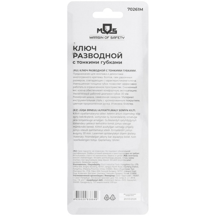 Предназначен для монтажа и демонтажа многогранного крепежа, болтов, гаек различных размеров, совпадающих с характеристиками ключа. Уменьшенная толщина губок позволяет эффективно работать в ограниченном пространстве. Сниженный вес ключа обеспечивает комфортную эксплуатацию. Увеличенный рабочий диапазон губок. Размерная шкала, нанесенная лазером. Материал: инструментальная сталь с хромированным покрытием, цветная прорезиненная ручка. Упаковка: блистер.