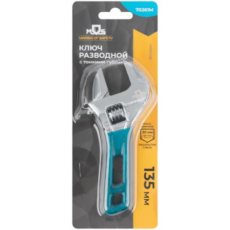 Ключ разводной с тонкими губками, пластиковая накладка на ручку, 135 мм ( 30 мм )