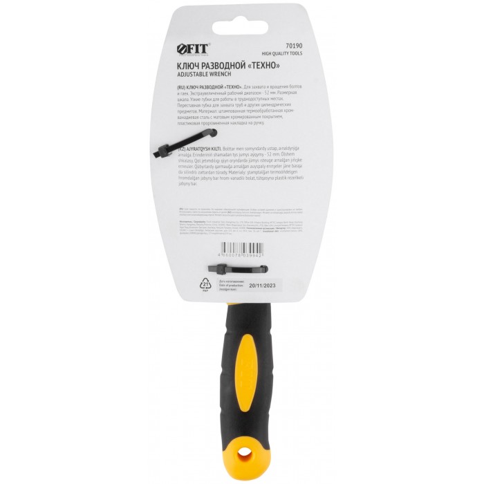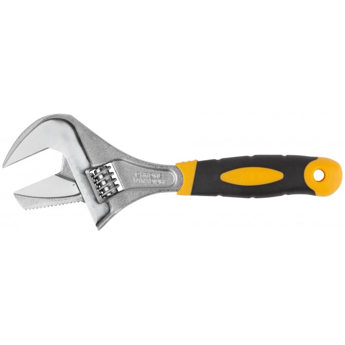 Ключ разводной "Техно" CrV, узкие + переставная губки, шкала, увеличен.захват, прорезин.ручка 250 мм ( 52 мм )
