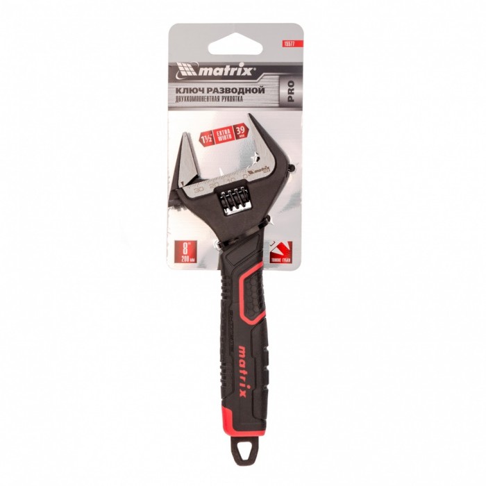 Ключ разводной, тонкие губки, фосфатированный, двухкомпонентная рукоятка, 200 мм, PRO Matrix