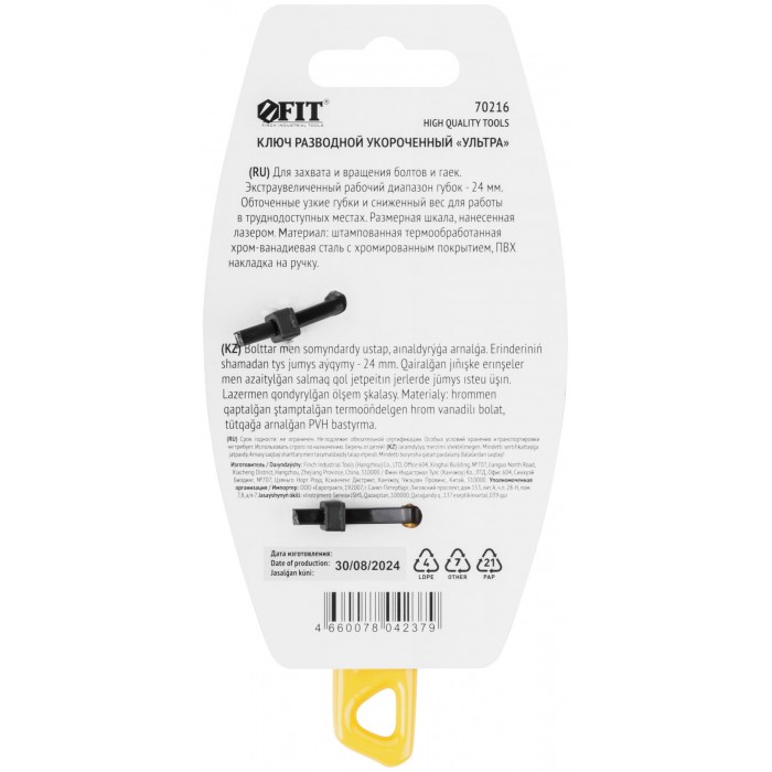 Ключ разводной "Ультра", CrV, укороченный, обточен. узкие губки, шкала, экстра увелич.захват 120 мм ( 24 мм )