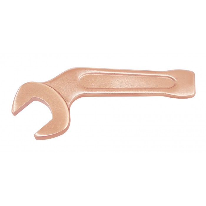 Ключ рожковый ударный изогнутый HORTZ, предназначен для работы с тугими крепёжными соединениями. Ударные гаечные ключи имеют на конце блок, предназначенный для нанесения ударов молотком. Искробезопасные ключи применяют в металлургической, газовой, нефтяной, горнодобывающей, угольной и других отраслях промышленности, а также в зонах повышенной взрывоопасности. Изготавливается в двух вариантах сплавов: алюминиевая бронза и бериллиевая бронза (AL-Cu & Be-Cu). Высокая прочность, высокое качество. Сертифицирован в соответствии со стандартами взрывобезопасности ТР ТС 012/2011.