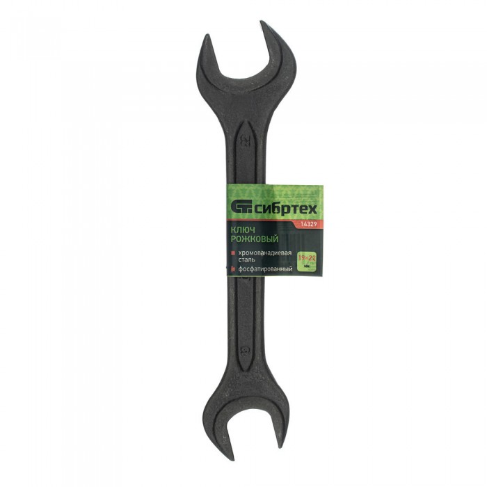 Ключ рожковый,19 х 22 мм, CrV, фосфатированный Сибртех