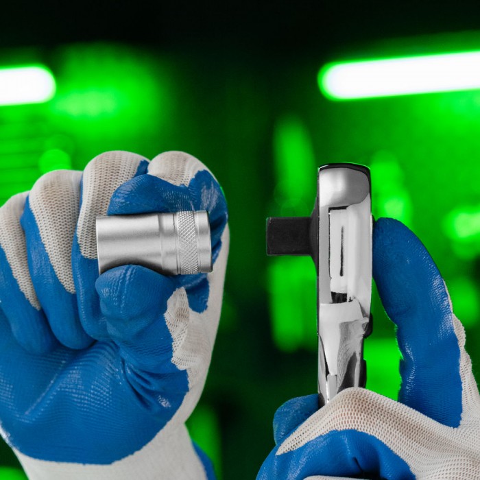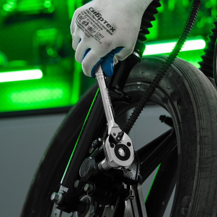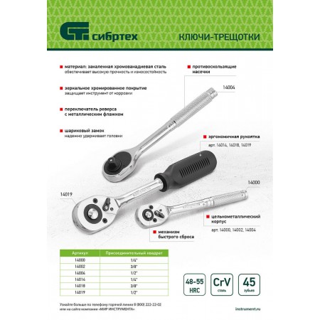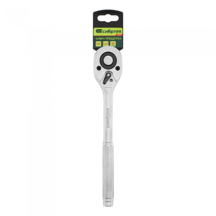 Ключ-трещотка 1/2", 45 зубьев, цельнометаллический, с быстрым сбросом, CrV, хром Сибртех