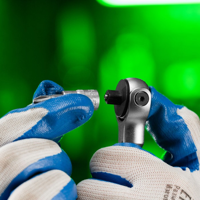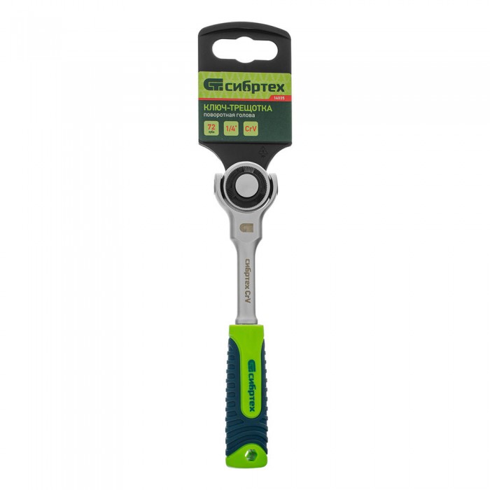 Ключ-трещотка 1/4", 72 зуба, поворотная голова, с быстрым сбросом Сибртех