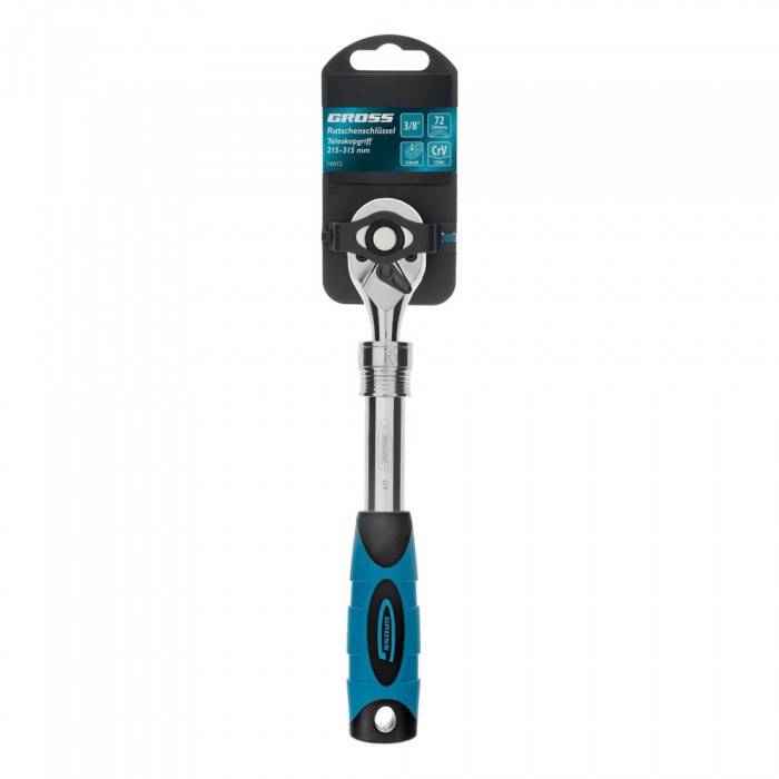 Ключ-трещотка телескопический 3/8", 215-315 мм, CrV, 72 зуба, с быстрым сбросом, хром Gross