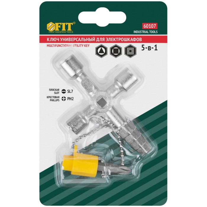 Ключ универсальный для электрошкафов 5-в-1, двусторонняя CrV бита PH2/SL7 (60107)