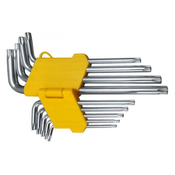 Ключи "звездочки", CrV сталь, 9 шт., Т10-Т50, с отверстием, длинные, в пластиковом держателе