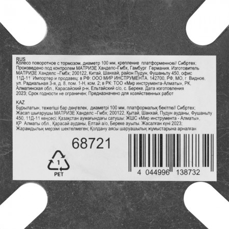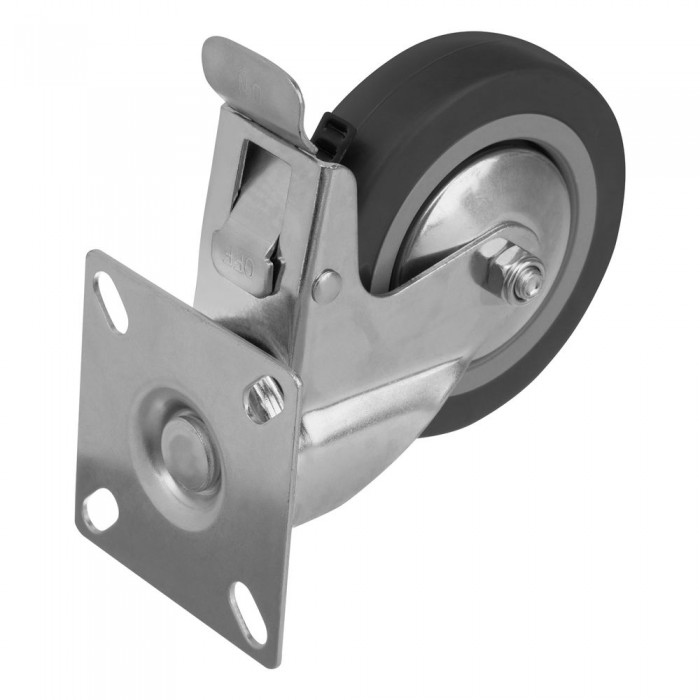 Колесо поворотное с тормозом D 100 мм, крепление платформенное Сибртех (68721)