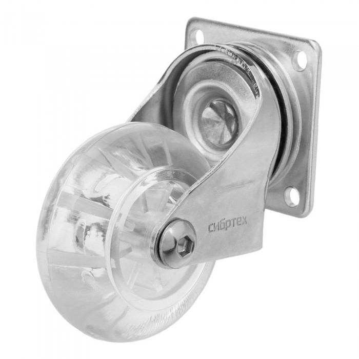 Колесо ПУ прозрачное поворотное d-50 мм, крепление платформенное Сибртех (68732)