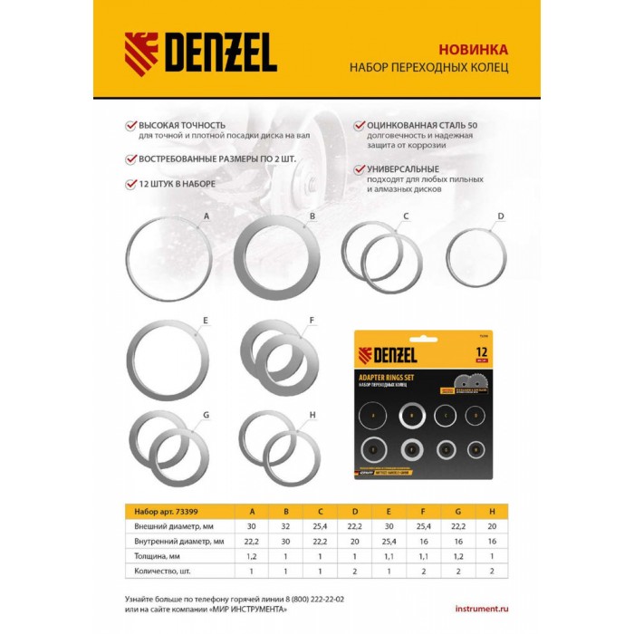 Кольца переходные 32х30, 30х25,4, 25,4х22.2, 22.2х20, 20х16, 30х22.2, 25.4х16, 22.2х16 мм. Denzel