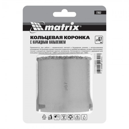 Кольцевая коронка с карбидным напылением, 67 мм Matrix (72852)