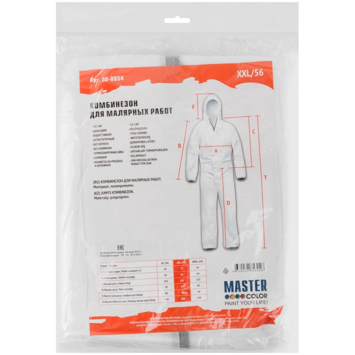 Комбинезон Master Color для малярныйх работ, полипропилен, белый р. XXL (30-8054)