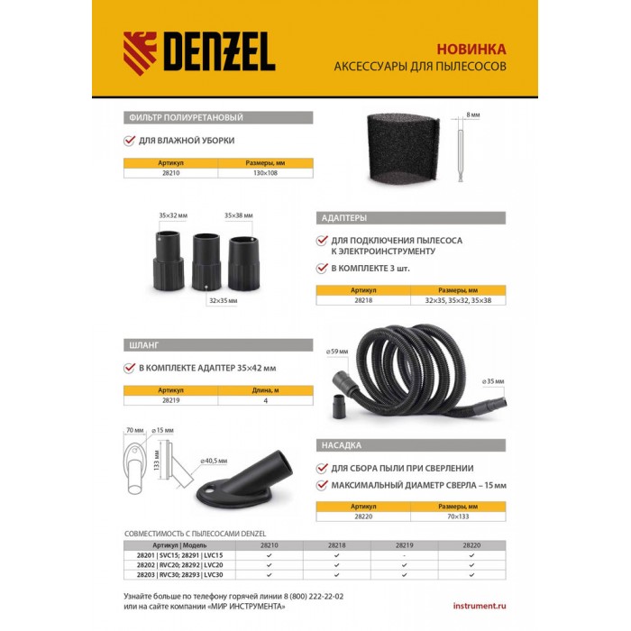 Комплект адаптеров для подключения пылесоса к электроинструменту 32-35-38 мм Denzel (28218)