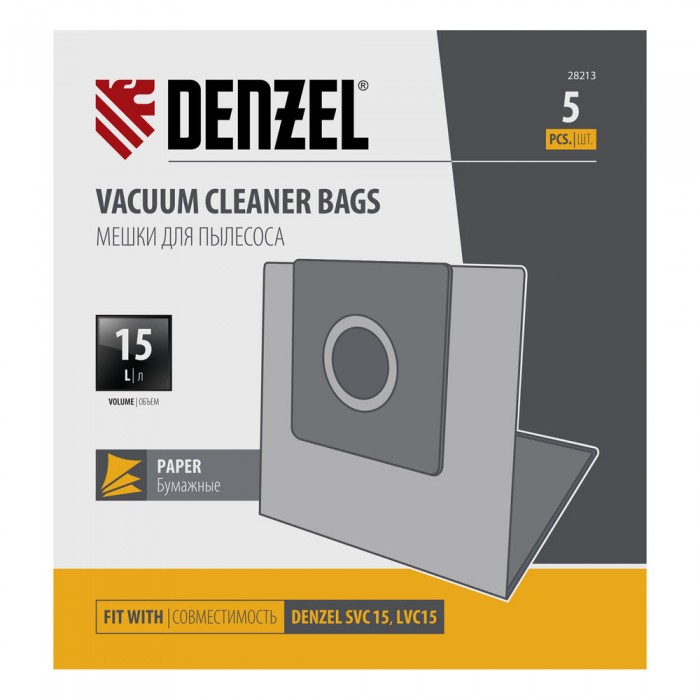 Комплект мешков одноразовых для пылесоса Denzel SVC15, LVC15 5 шт. Denzel (28213)