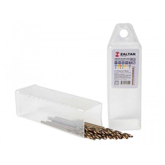 Комплект свёрл по металлу индустриальных, 10 шт, DIN 338, HSS-E Co5, Тип VA, 5xD, O2.50 мм (ZA-74025-S10)