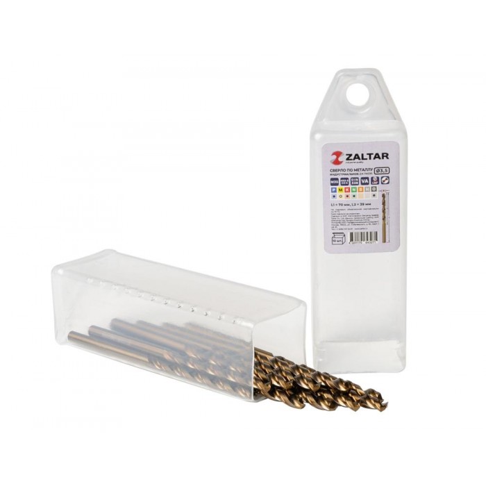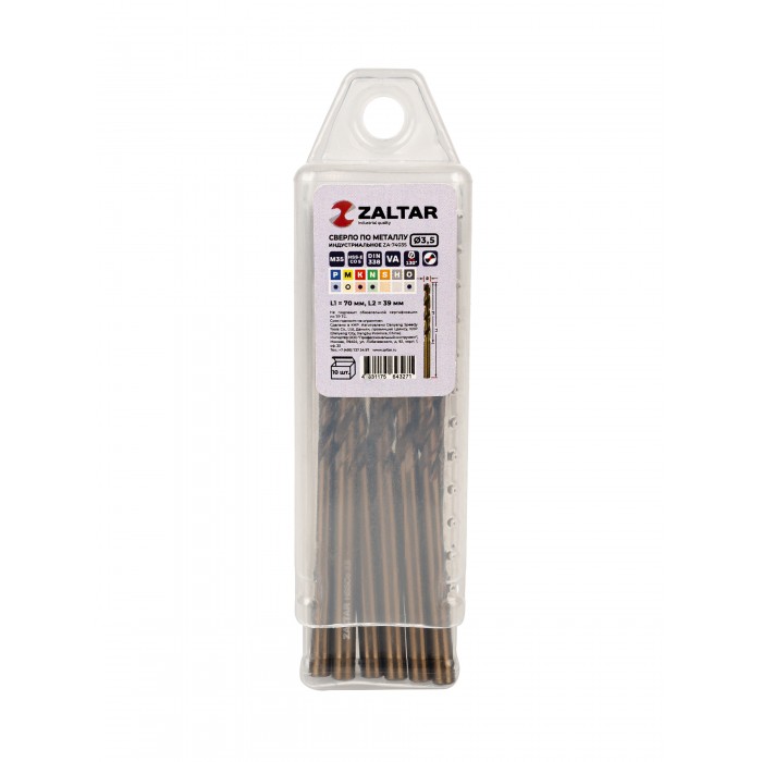 Комплект свёрл по металлу индустриальных, 10 шт, DIN 338, HSS-E Co5, Тип VA, 5xD, O3.50 мм (ZA-74035-S10)