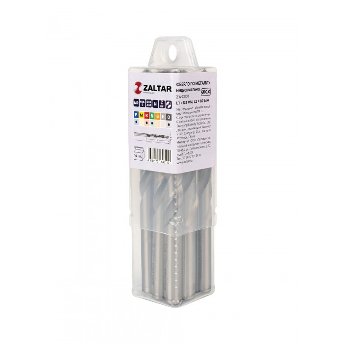 Комплект свёрл по металлу индустриальных, 10 шт, DIN 338, HSS-G, Тип N, 5xD, O10.00 мм (ZA-73100-S10)