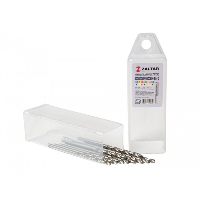 Комплект свёрл по металлу индустриальных, 10 шт, DIN 338, HSS-G, Тип N, 5xD, O2.50 мм (ZA-73025-S10)